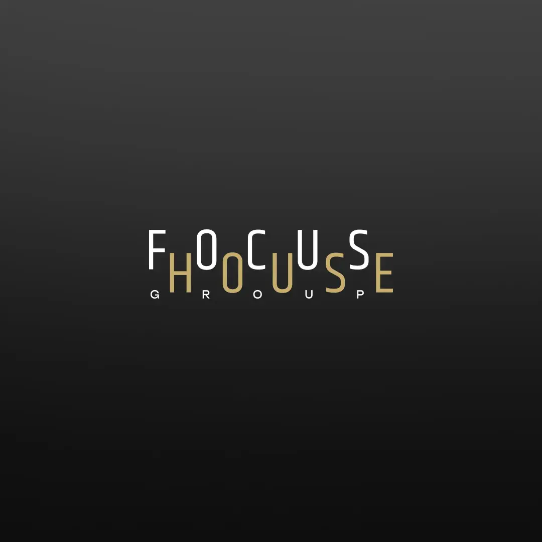 • Надпись «FOCUS» — современный sans-serif с утончённой линией, «HOUSE» — в золоте для тепла