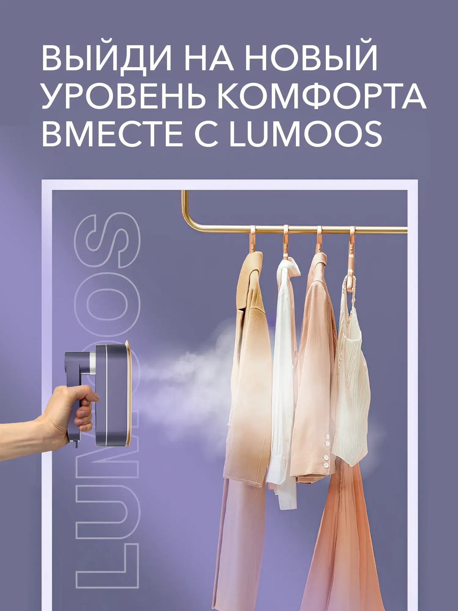 • Формат: 1200x1200 px, карусель из 4–5 слайдов, SEO-теги «отпариватель LUMOOS 3 в 1», «компактный отпариватель».