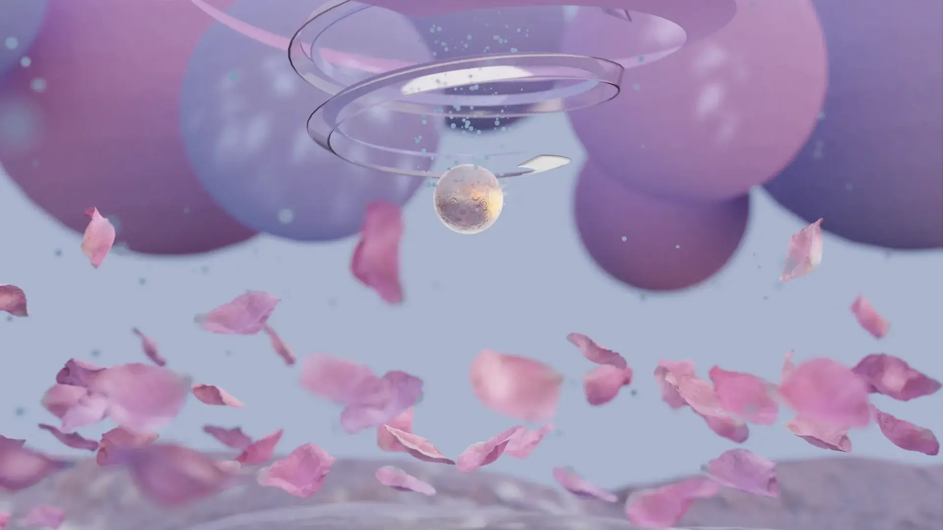Мы стремились передать атмосферу гармонии и нежности через плавную динамику, мягкое освещение и тактильные визуальные образы — лепестки, свет, прозрачные структуры.