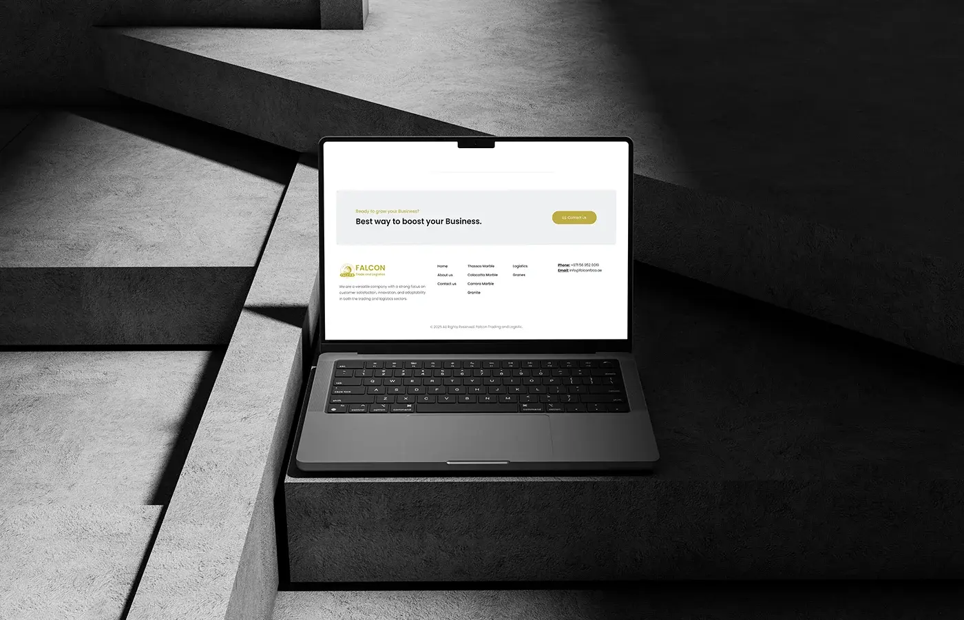 Разработка сайта для Falcon Trading and Logistic — современная платформа, интегрирующая глобальную торговлю, премиум-камнями и логистические решения, с акцентом на элегантность и удобство.