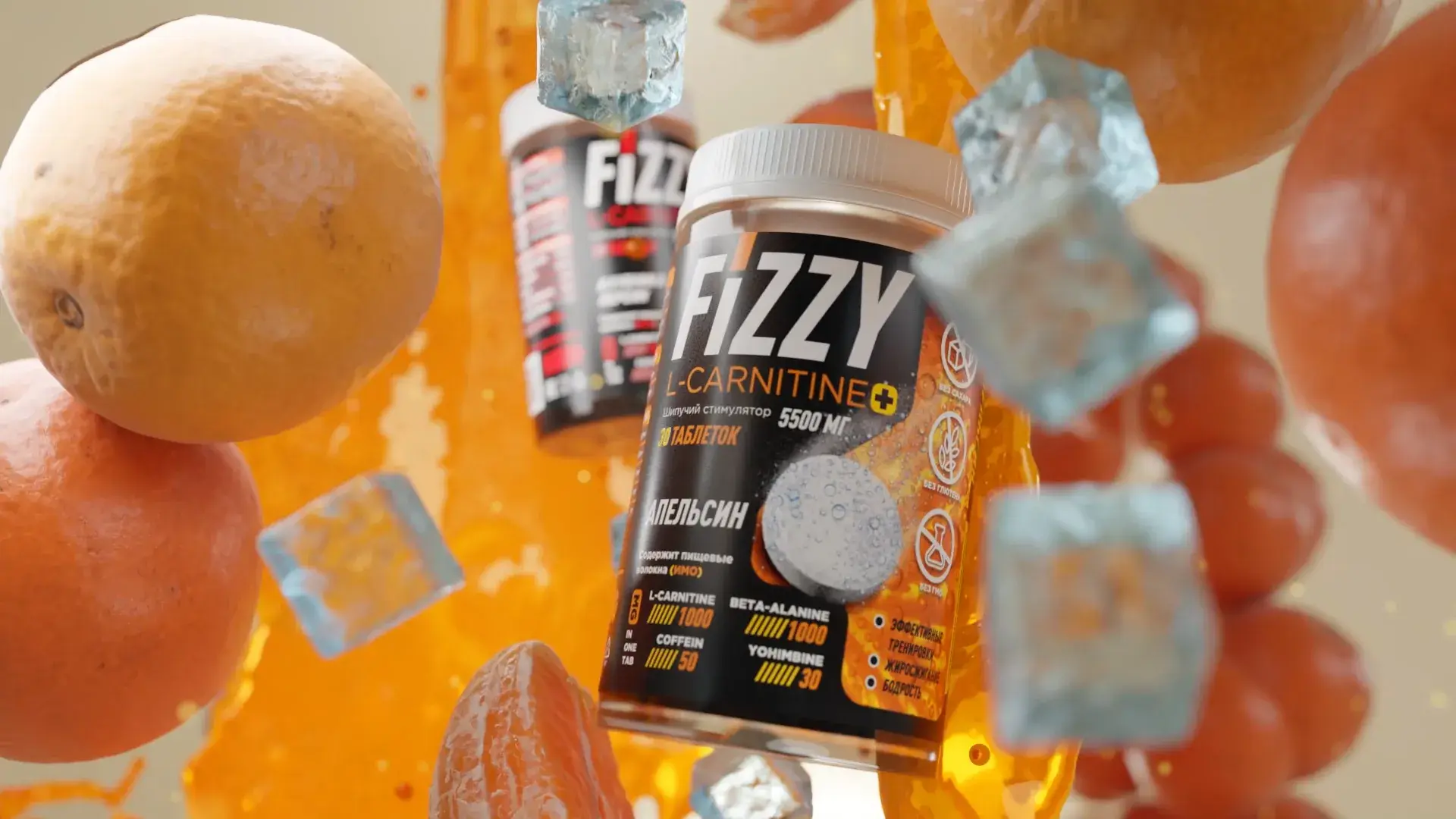 Получился яркий, сочный и визуально запоминающийся 3D-ролик, передающий вкус и энергию продукта FIZZY L-Carnitine.