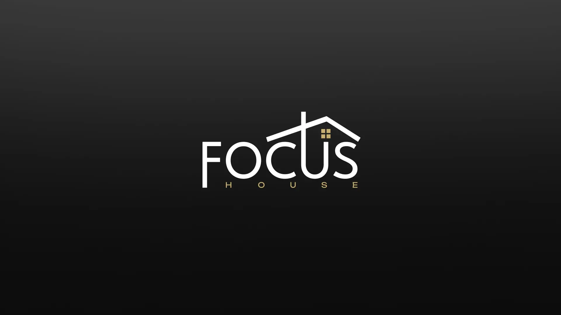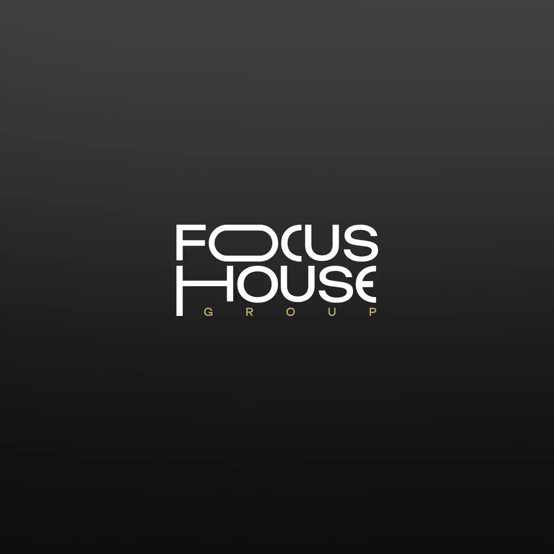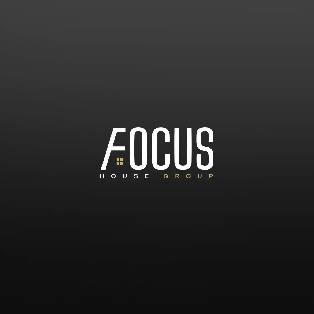 • Надпись «FOCUS» — современный sans-serif с утончённой линией, «HOUSE» — в золоте для тепла