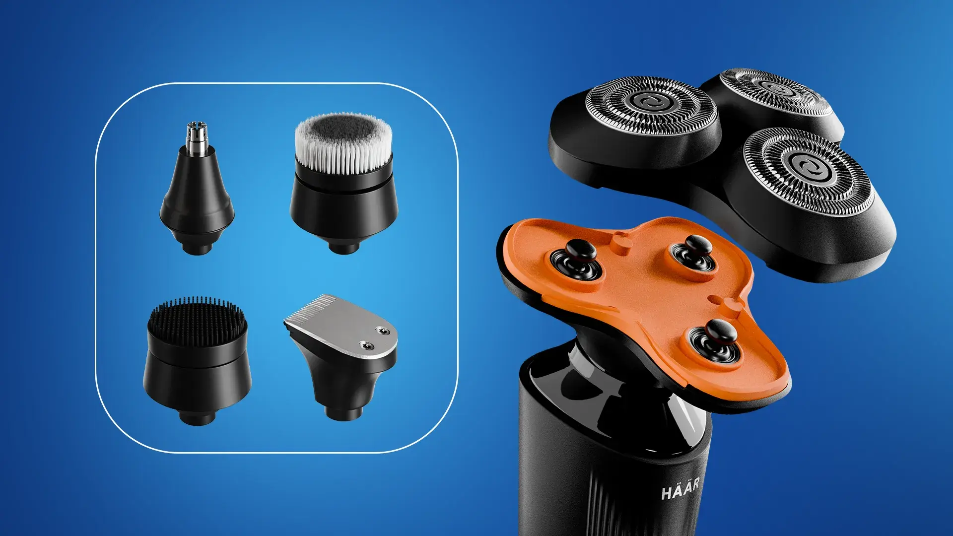 В итоге получилась современная, визуально сбалансированная упаковка, которая выделяется среди конкурентов на маркетплейсах и усиливает восприятие бренда HÄÄR как технологичного и уверенного игрока в категории доступных устройств для мужского ухода.
