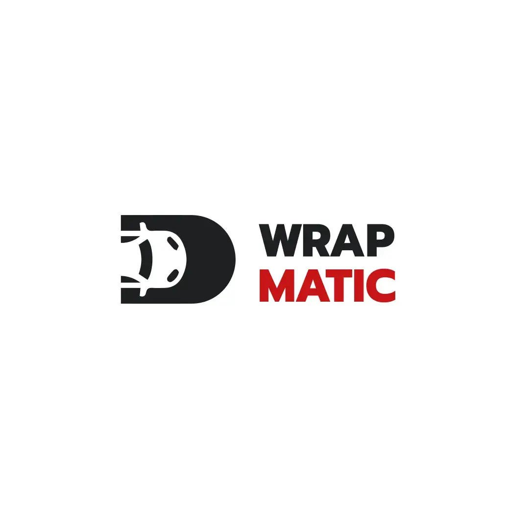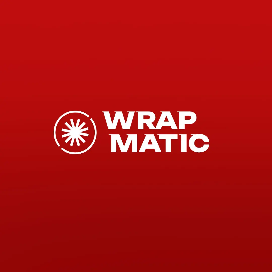 • Основной элемент: "WRAPMATIC" в жирном рубленом шрифте с наклонной "M" и "A" для ощущения скорости; красные акцентные линии снизу.